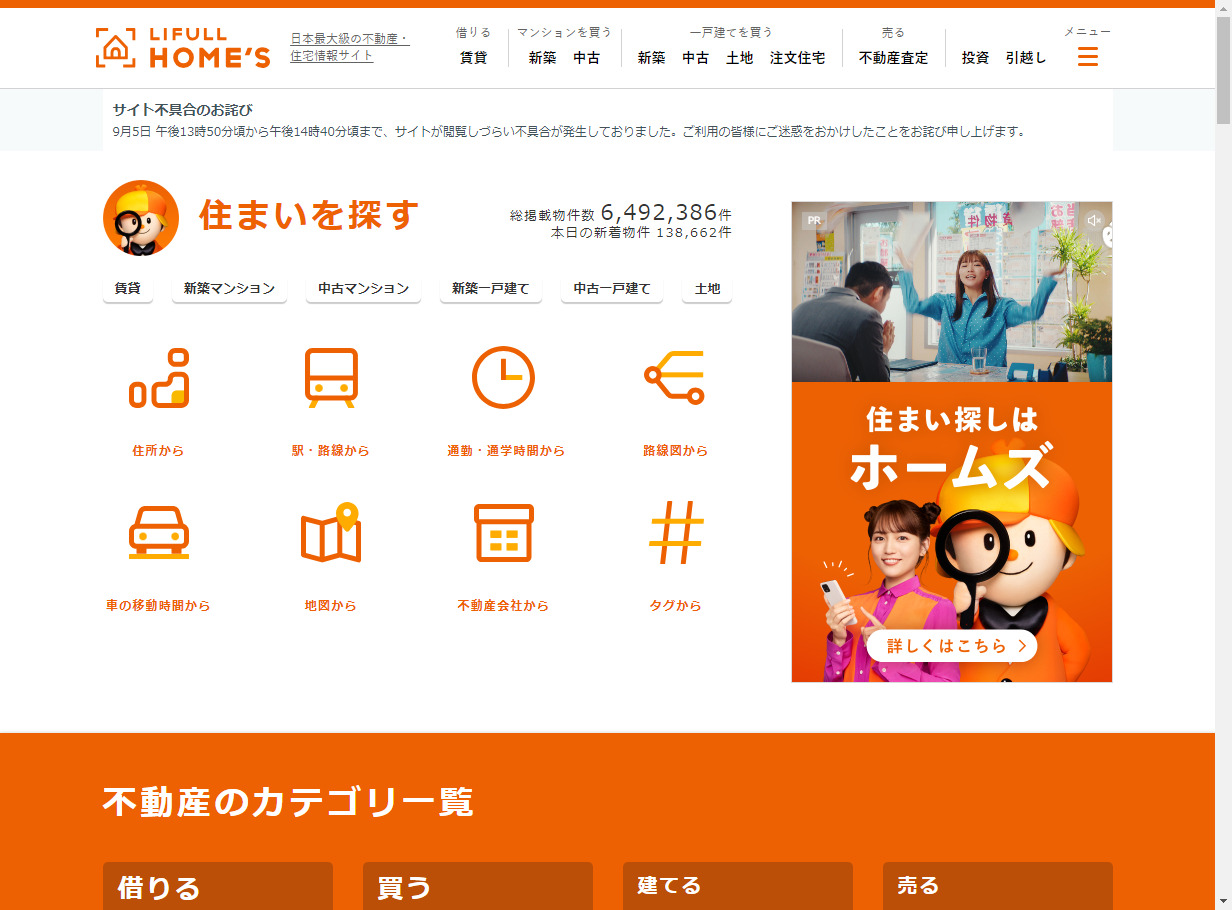 「ライフルホームズ」は、国内最大級の住宅情報サイトで知名度も高いポータルサイトです。全国に対応しており、圧倒的な集客数と、物件の探しやすさ・お問合せを促す仕組みが徹底されているようです。