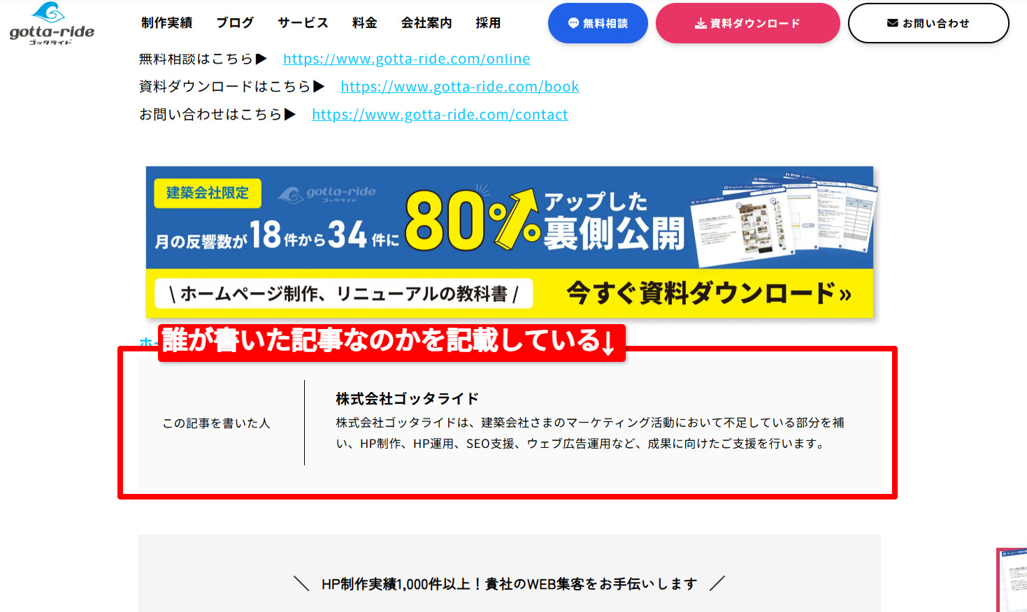 ゴッタライドの場合、記事の下部に誰が書いたかを記載しています↓